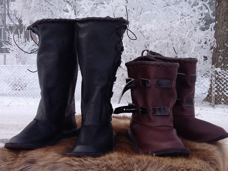 "Ny" medeltidsstövel med söm på utsidan och kilklack. Finns som remkänga och snörstövel.